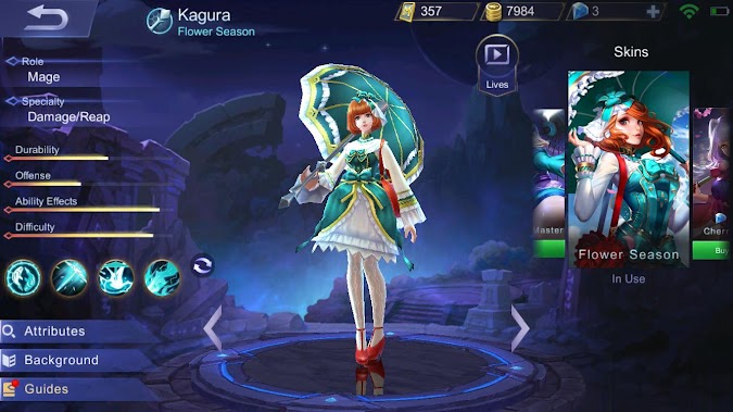 Setelah dilakukan patch, damage dari payung Kagura tidak dapat diremehkan. Terutama skill ultimate dari payungnya yang dapat menarik beberapa hero sekaligus. Tidak hanya itu, Kagura juga dapat berpindah ke tempat lemparan payungnya dan membuat musuh disekitarnya menjadi stun.